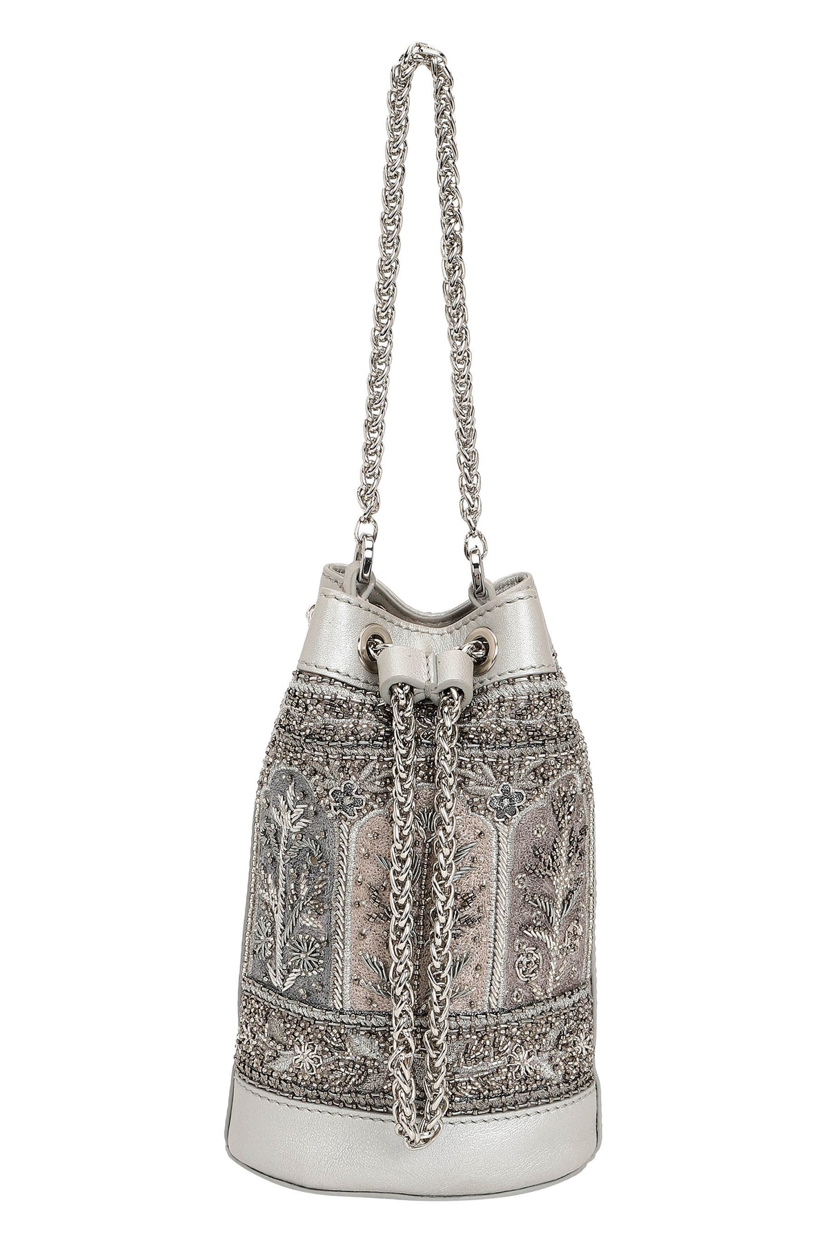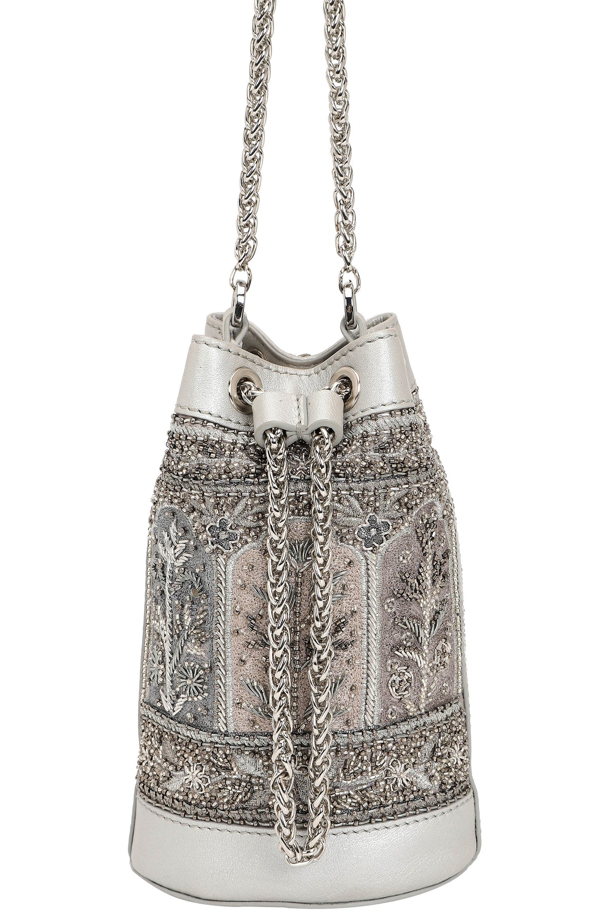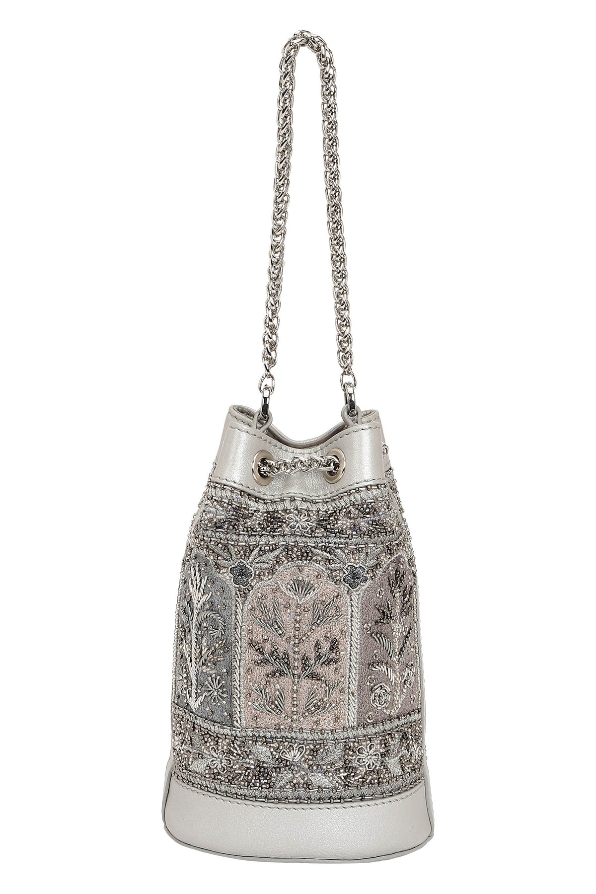 Any variations in the leather or the fabric are the characteristic of the product and add to its beauty and uniqueness. To avoid any accumulation of dust, please store your product in its dust bag when not in use. To maintain the shape of the bag, please keep the bag with its original stuffing when not in use. Embroidery and embellishment is done by hand and should be handled with care. Exposure to liquids may cause damage. Keep away from sunlight and extreme temperatures.
