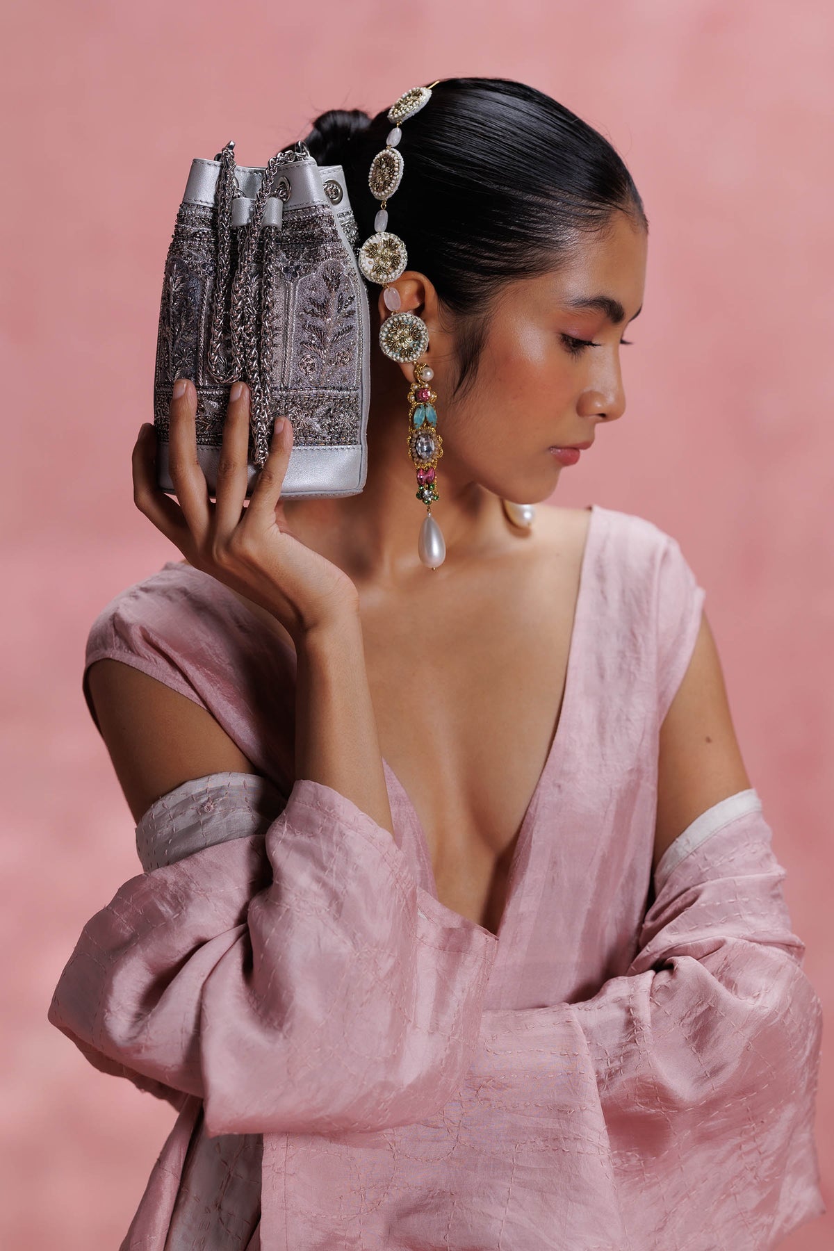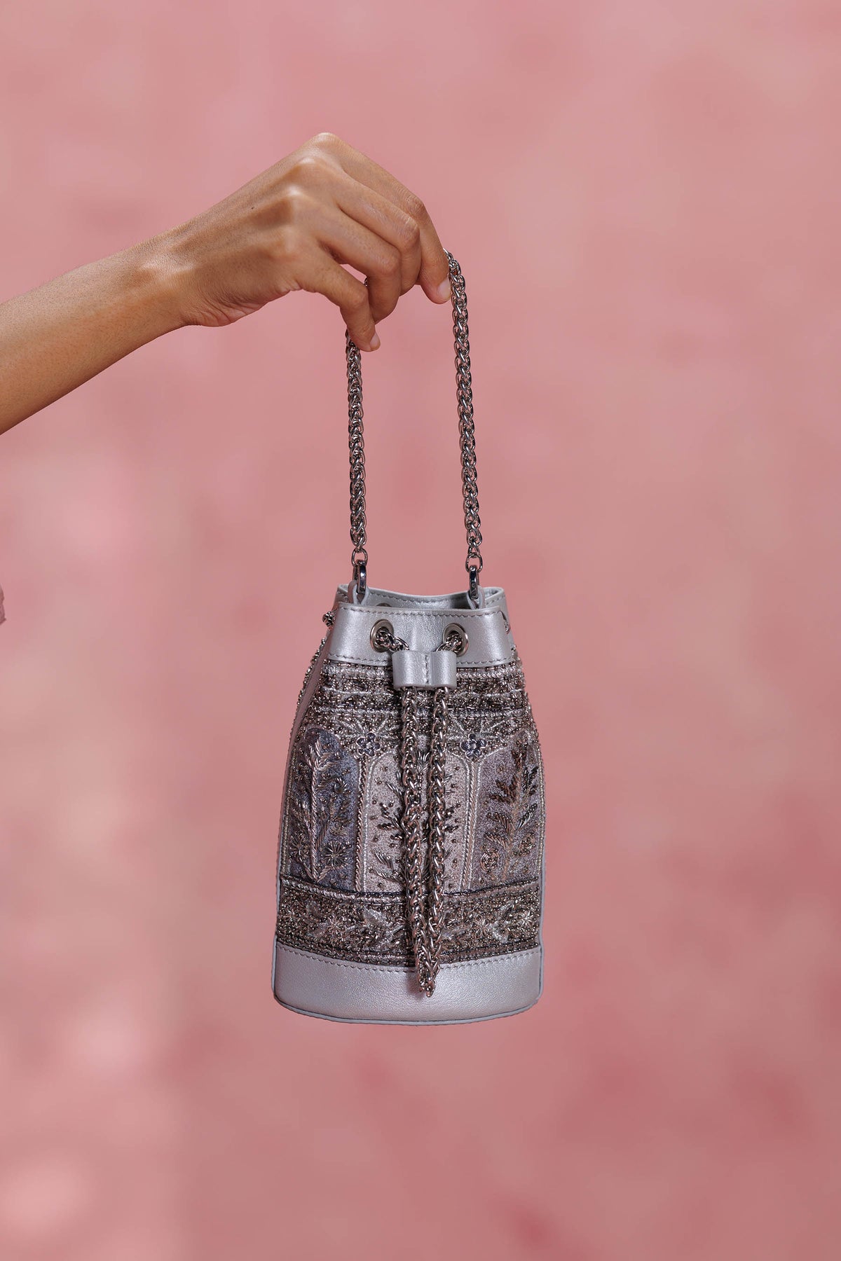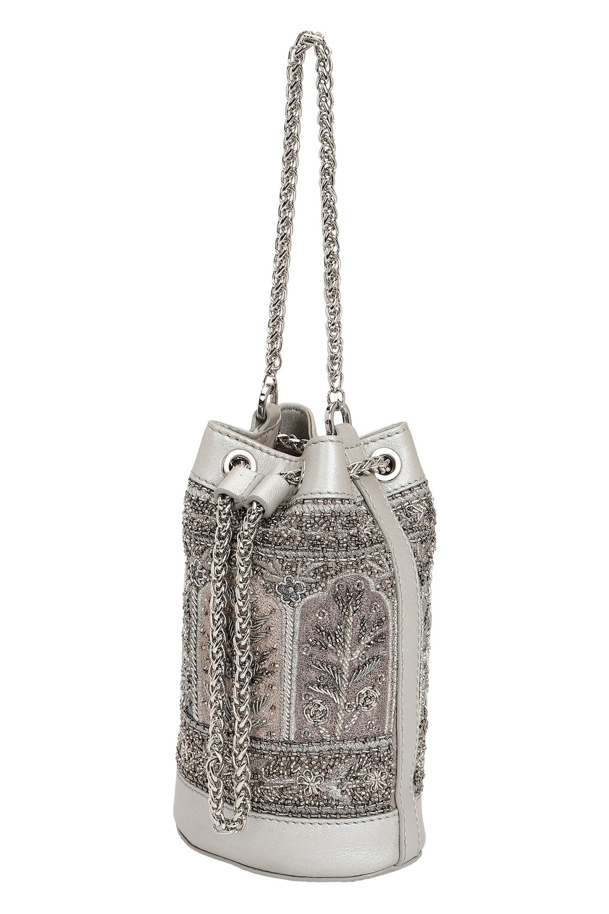 Any variations in the leather or the fabric are the characteristic of the product and add to its beauty and uniqueness. To avoid any accumulation of dust, please store your product in its dust bag when not in use. To maintain the shape of the bag, please keep the bag with its original stuffing when not in use. Embroidery and embellishment is done by hand and should be handled with care. Exposure to liquids may cause damage. Keep away from sunlight and extreme temperatures.