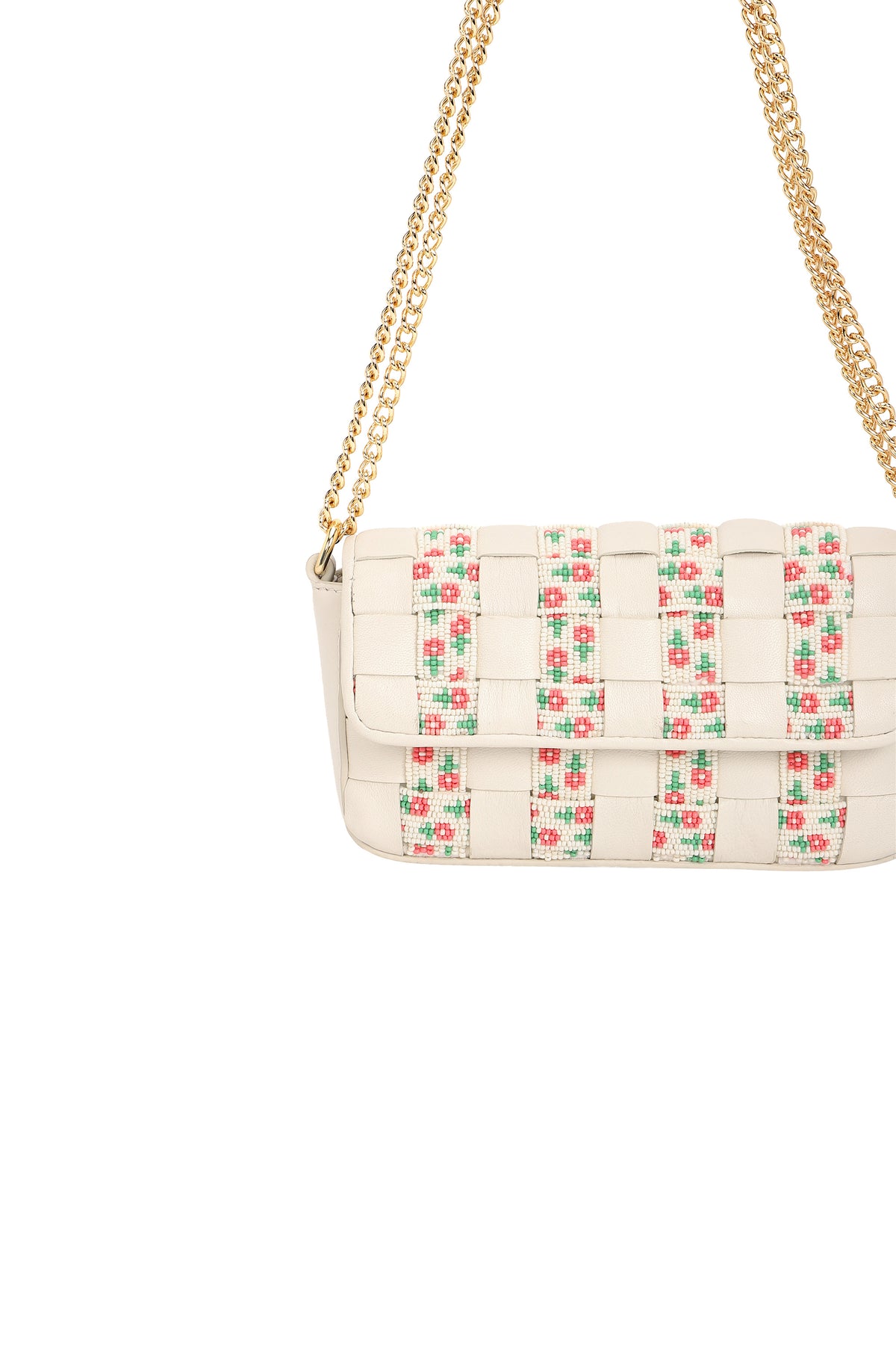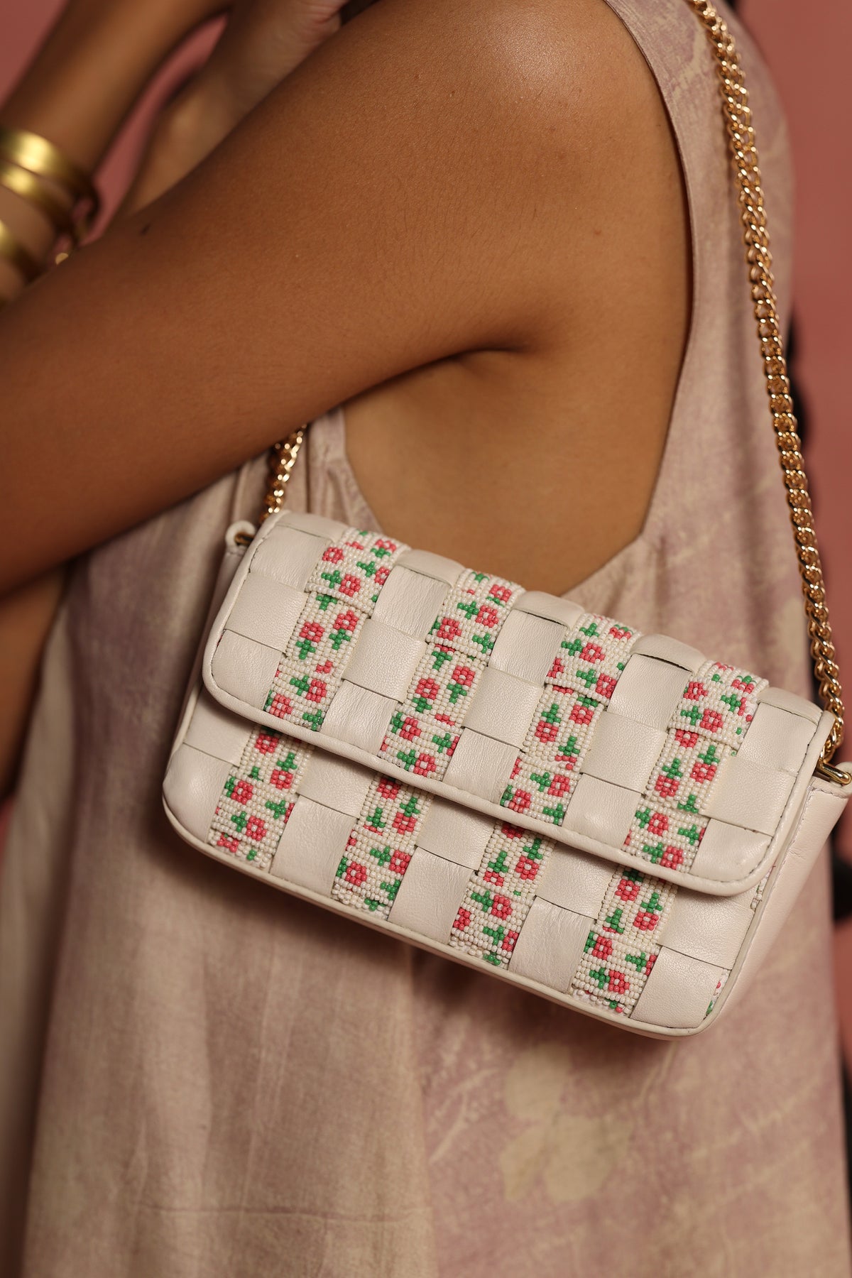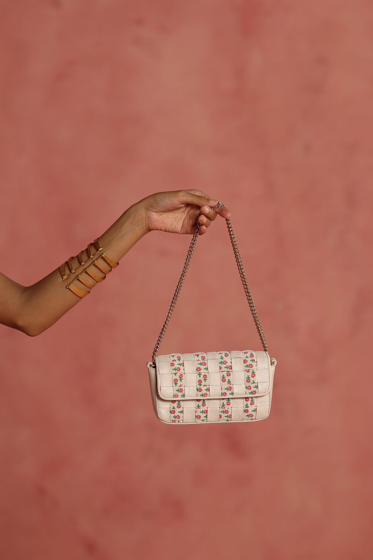 Any variations in the leather or the fabric are the characteristic of the product and add to its beauty and uniqueness. To avoid any accumulation of dust, please store your product in its dust bag when not in use. To maintain the shape of the bag, please keep the bag with its original stuffing when not in use. Embroidery and embellishment is done by hand and should be handled with care. Exposure to liquids may cause damage. Keep away from sunlight and extreme temperatures.